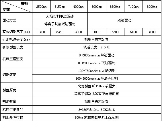 雙頭火焰切割機(jī)主要技術(shù)參數(shù):